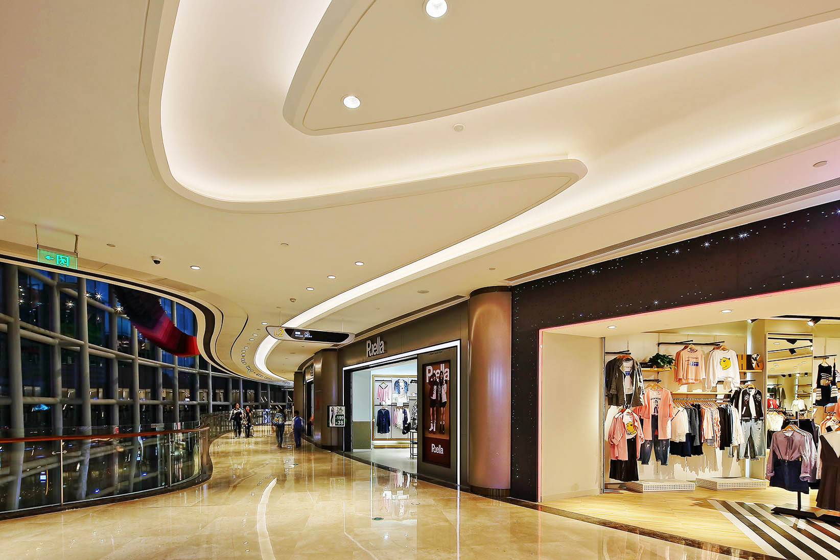 水貝金座大廈幕墻玻璃采用綜合性能較高的LOW-E中空玻璃; 3D打印彩釉,用內(nèi)部燈光營造出絲綢的皺褶效果。玻璃、陶土板等面板,95%以上是在工廠加工,大大節(jié)省了現(xiàn)場施工時間,保障了工程的順利完工。