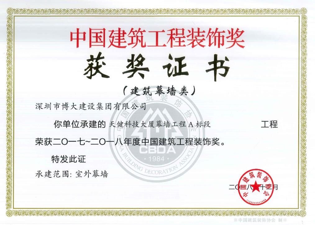 項目分別獲得深圳市金鵬獎、廣東省優(yōu)秀建筑裝飾工程獎及中國建筑工程裝飾獎。