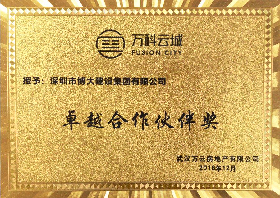 萬科云城作為武漢萬科首個商業綜合體項目,質量標準極為嚴格,方方面面精致考究。40個日夜的奮戰,博大建設集團將一個不可能完成的任務如期交付,并獲得萬科華中大區評比高分,被評為卓越合作伙伴!