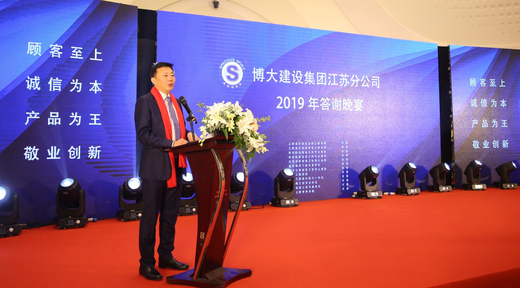 宴會上,董事長徐凱宏代表博大建設(shè)集團(tuán)董事會宣布:任命謝方先生為集團(tuán)董事、副總裁、江蘇分公司總經(jīng)理。同時,向行業(yè)介紹了集團(tuán)總部為江蘇分公司量身定制的五大“特權(quán)”政策,全力支持其拓展江蘇市場,期望江蘇分公司成為博大戰(zhàn)略改革的模范試驗區(qū),實現(xiàn)集團(tuán)與合伙人之間的共贏。