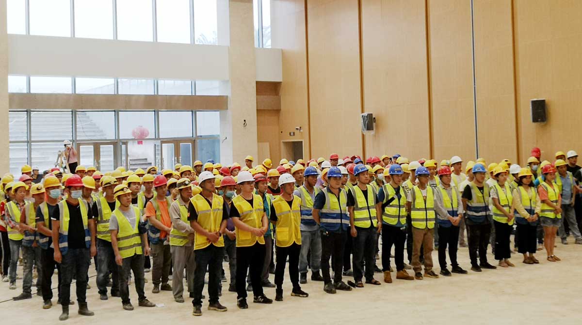 6月9日,博大建設集團柳州市民服務中心項目部500余人舉行宣誓大會,廣西分公司總經(jīng)理李培陽帶領宣誓,集團副董事長黃河做動員講話。廣西五建總經(jīng)理助理、三分公司黨委副書記、總經(jīng)理姚開成等一行領導蒞臨現(xiàn)場檢查指導,并為大家加油鼓勁兒。
