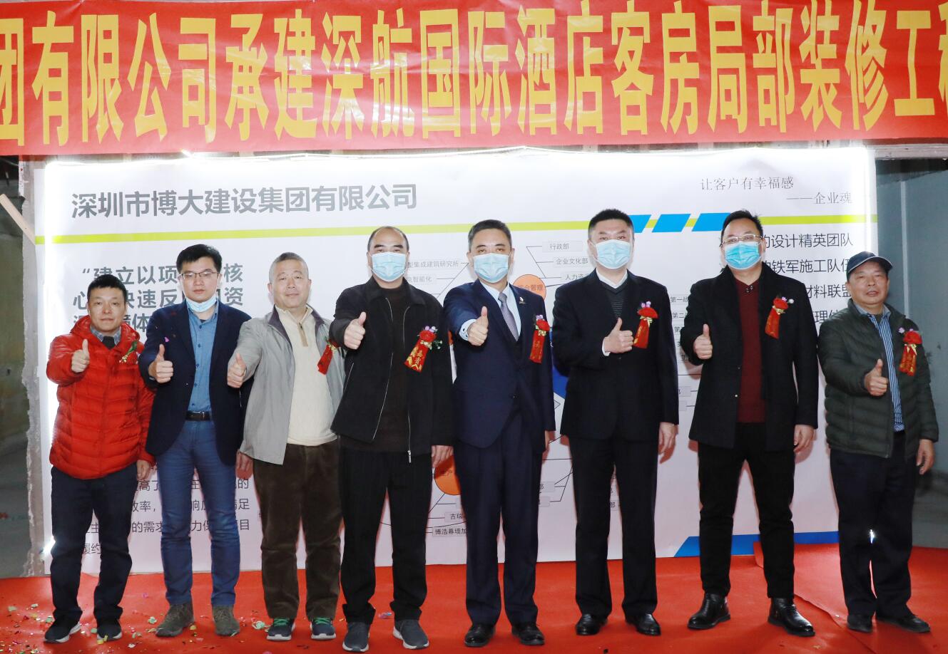 2021年1月14日,在開完深航國際酒店客房局部裝修工程第一次工地會議后,集團副董事長黃河、第三戰(zhàn)區(qū)總經(jīng)理徐朝華與深航基建處副總經(jīng)理陳新、深航基建處工程管理中心譚波、深航酒店副總經(jīng)理肖強、深圳市中安項目管理有限公司總經(jīng)理趙坤強等一行領(lǐng)導(dǎo)參加了深航國際酒店開工典禮剪彩儀式。