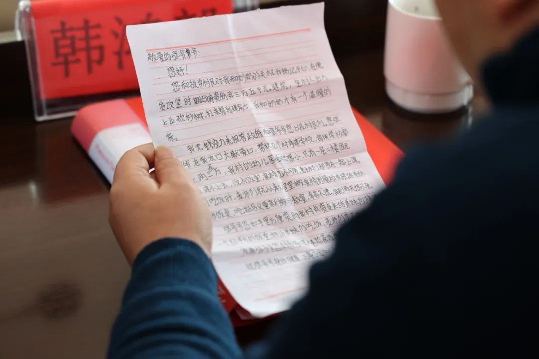 在捐贈(zèng)現(xiàn)場(chǎng),一位82歲的侗族殘疾老奶奶帶來(lái)了相依為命的孫子寫的一封感謝信,黎平縣政協(xié)副主席韓鴻毅親自朗讀,為大家分享這個(gè)小學(xué)生的感謝信,童言童語(yǔ)情真意切,感人至深。