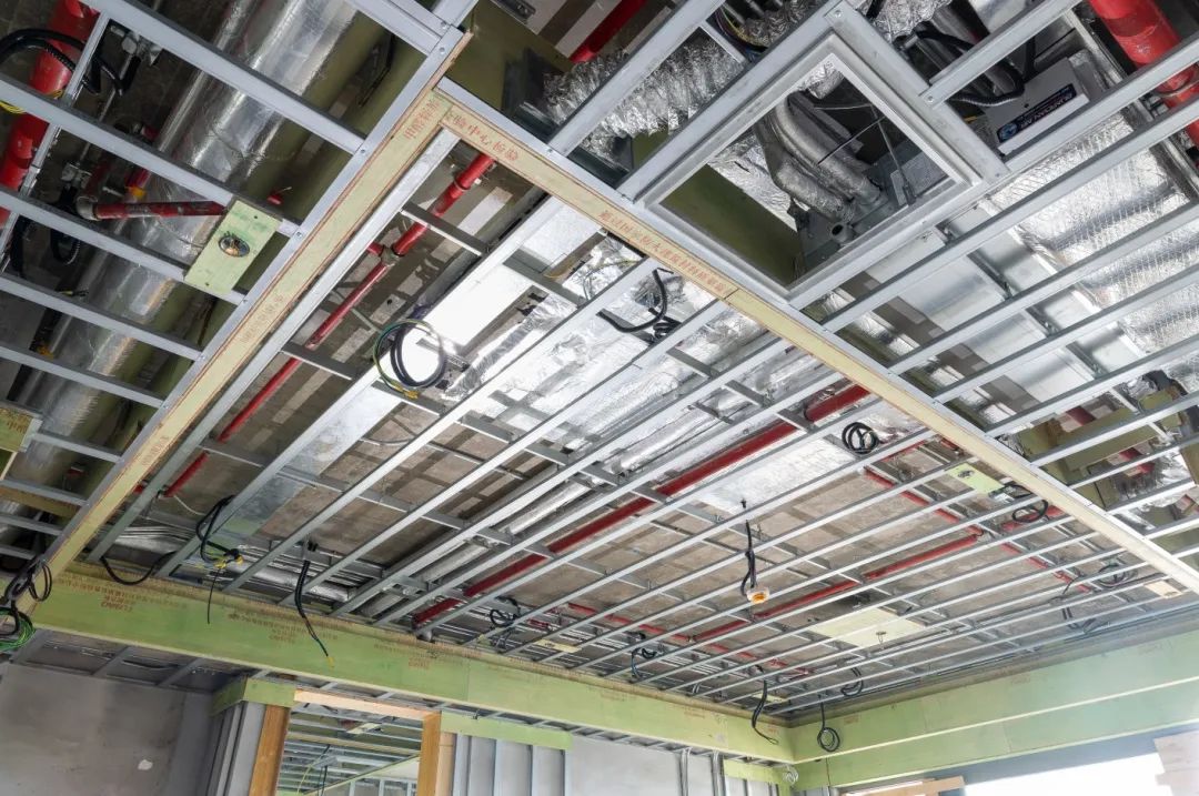 項目部除嚴格管控材料質量外,也嚴格把控過程施工質量,從基層彈線、龍骨排版、線管施工、艾特板安裝、夾板施工、防水施工等基層施工,每一道工序都嚴格按照標準、技術要求、工法樣板進行施工。
